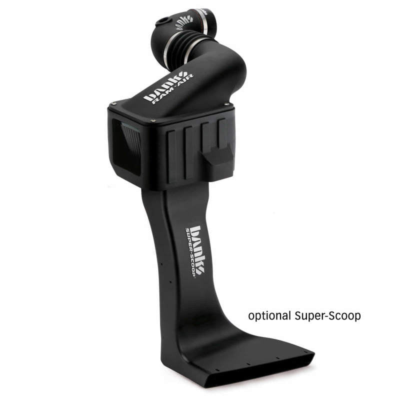 Largest filter area for superior high-flow filtration and fewer filter cleanings. Exclusive 5 inch bellows accommodates engine movement and prevents component damage. Cooler temps, more power and MPG, plus a cleaner-running engine. Testing, testing & more testing. Banks Ram-Air Intake Systems are tested and proven. They start out as CAD software prototypes and are put through flow simulations. After a hardware prototype is made, it's tested on a flowbench. Then it's tested on the vehicle. And finally, Banks' density-tests the Ram-Air against stock and many competitors. Proven design. Proven performance. Banks Ram-Air Intake maximizes the flow of cool, dense air to the engine for greater power and fuel economy. Thanks to its enclosed cold-air housing, huge inlet with giant dome-shaped filter, and streamlined internal design, it flows 47% better than stock! Infact, it performs so well that it delivers greater air density to the turbo's inlet than all competitors tested. Add on the optional Super-Scoop, and the results are even better! It's all about density. And Banks Ram-Air Intakes deliver. The harder you work your truck, the more Banks Ram-Air Intake improves power and fuel economy! Longer service life, too. An aftermarket exclusive: with 5" bellows, Banks Ram-Air accommodates engine movement, which protects the components and extends service life. What's more, Ram-Air is designed to not cause fault or error codes. Key Features: Enclosed housing keeps out hot, power-robbing engine air. Extends service life and requires fewer cleanings. Inhales cooler outside air for more power & MPG. Giant filter maximizes high-flow filtration Reduces exhaust gas temps (EGTs). Accommodates engine movement. Extensively tested & validated. Prevents component damage. Outflows stock up to 47%. 5-year Limited Warranty. DRY Air Filter Element. Helps engine run cooler. Note: Super-Scoop No Longer Available