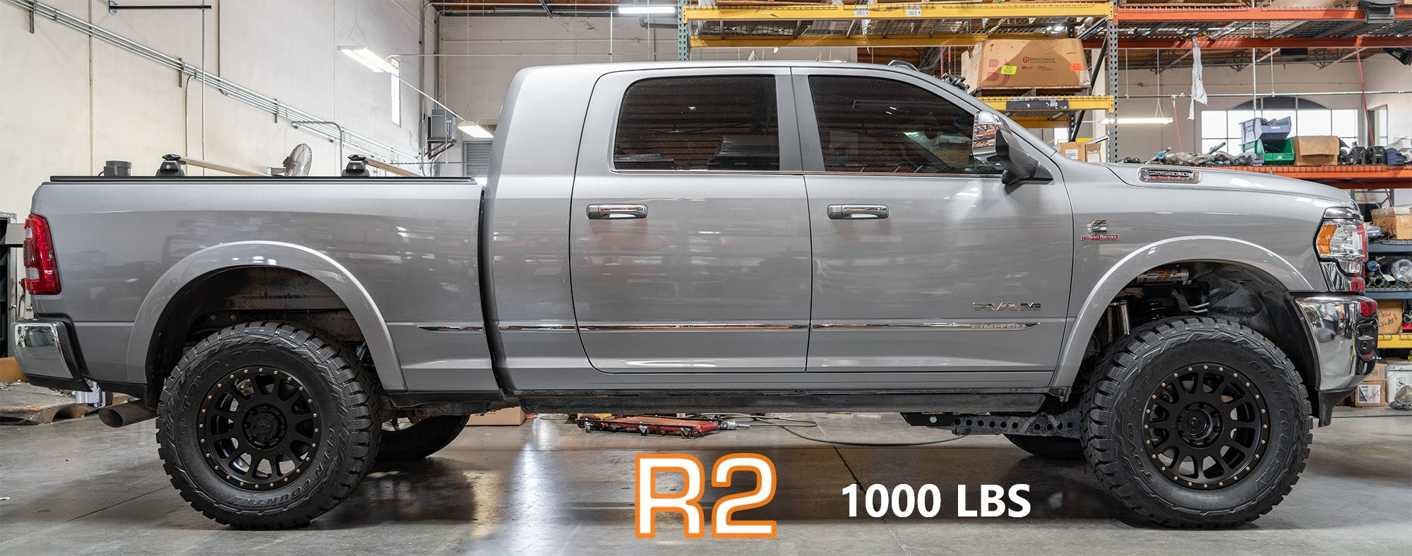 The Details: Your truck will sit 3”-3.5” higher in the front (cab configuration dependent) with 50% more suspension travel than the factory platform thanks to the taller, lighter rate coil springs.