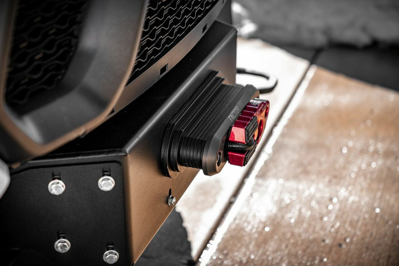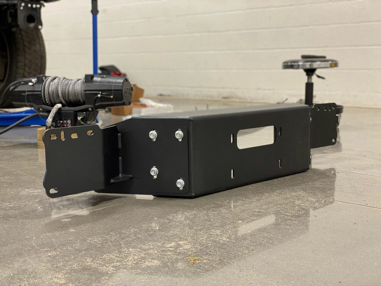 This hidden mount lets you put a winch on your truck with very little modification. This kit includes the winch mount and hardware necessary. We recommend the Warn ZEON Platinum winch due to its robustness and wireless remote that now only allows you to winch in and out wirelessly, but also lets you engage and disengage the freespool clutch! Which is the only one on the market to do that. It's also very important because with a hidden winch like this, it would be very difficult to reach the freespool clutch lever on a regular winch. Here's a link to the install video (shown here on the RAM, I will make an updated one with the TRX as soon as possible):