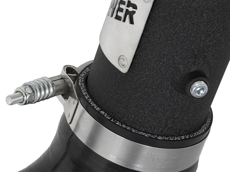 Flow and Performance: Constructed of mandrel bent, powder-coated aluminum tubing for maximum flow. The smooth transition bends decrease turbulence and minimize pressure loss, increasing horsepower, torque and lowering EGT's. Perfect Fit: Utilizes the factory mounting locations to provide stability for a hassle-free installation. Includes high quality stainless steel spring loaded t-bolt clamps and heavy-duty 5-Ply couplings for strength. This intercooler tube kit comes with two billet aluminum factory style quick-connect adapters that interface with the factory turbo and engine inlet to ensure a perfect seal. aFe Badging: A unique aluminum laser-cut aFe power logo plate is welded-on for an aggressive style.
