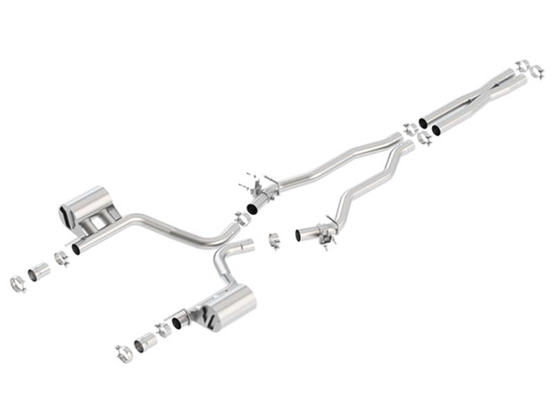This system features the aggressive ATAK(r) sound and a merge X-Pipe for increased performance and improved sound. This system INCLUDES Active MDS (Multi-Displacement System) Valves. This system does NOT include tips. Use factory valance / tips or optional Borla(r) tips 60729, 60729BC, 60729CFBA. Borla(r) Cat-Back(tm) & Axle-Back exhaust systems feature patented straight-through and multi-core technology to unleash hidden horsepower. Increased exhaust velocity adds power, driving excitement, fuel economy, and the distinctive Borla(r) Sound of Power respected by motoring enthusiasts everywhere. Each system is built from premium T-304 austenitic stainless steel, superior to T-400 series knockoffs (such as 409), to give you the absolute best in performance and durability. Ultra-smooth mandrel bends ensure maximum flow & power, and precision computer numerical control (CNC) manufacturing ensures an accurate fit. Best of all, Borla(r) stands behind every system with a Million-Mile Warranty. Just what you'd expect from the world's most experienced (and most winning) exhaust brand.