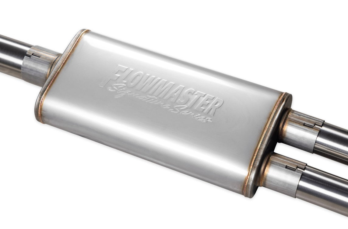 - Flowmaster Signature Series Exhaust: Features include a 3.00-inch inlet pipe leading into a TIG welded 304 stainless steel Signature Series "straight-through" muffler for great sound and maximum performance.