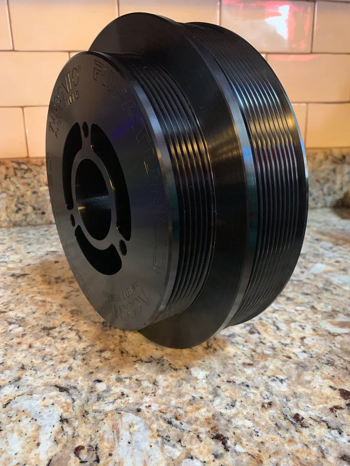 This can be used with the stock upper pulley to be as “incognito” as possible, or with any other upper pulley on the market to increase your boost even further without the labor or modifications that the other crank dampers on the market require.
