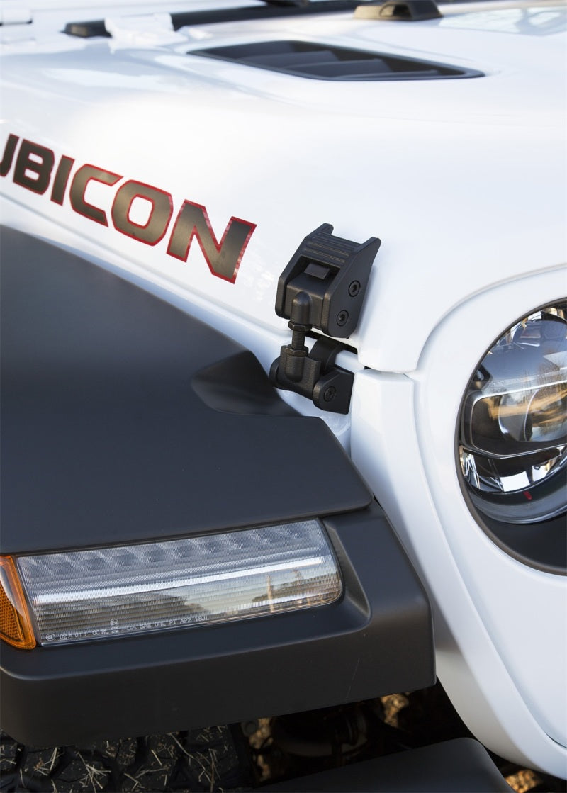 Rugged Ridge Aluminum Hood Catches are one of the simplest upgrades available for your Wrangler JL and Gladiator JT, and what a difference they make! Constructed from high-quality cast aluminum and engineered with an adjustable torsion rod for a precise fit, eliminating the possibility of hood flutter while adding a rugged muscular accent. Available in Black, Textured Black and Silver powder coat finishes, so there?s a Rugged Ridge Aluminum Hood Catch for every taste. Installation is a breeze with simple hand tools making them a must for your Jeep. US Patent D692,290