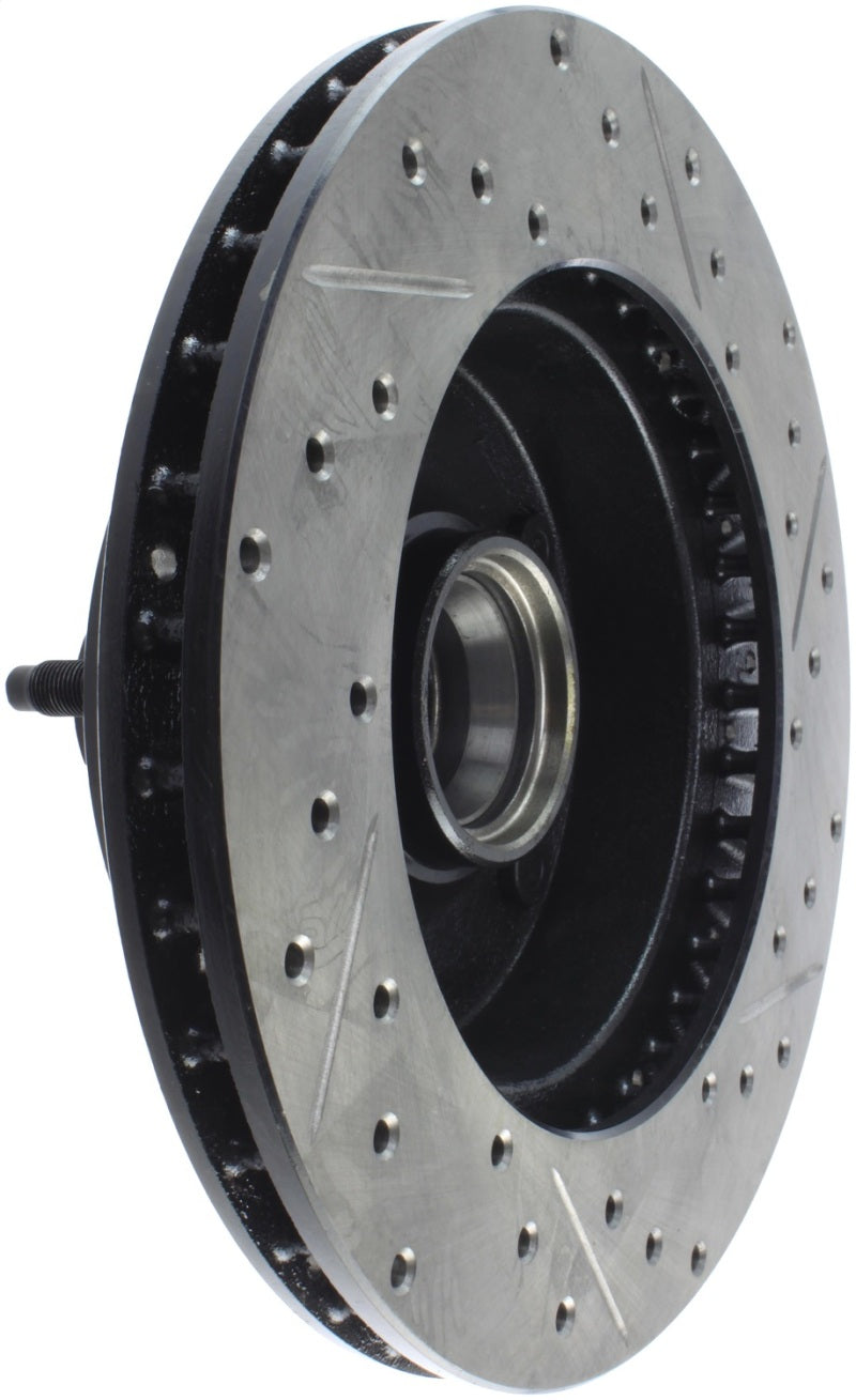 StopTech Drilled and Slotted Sport Rotors are 1-piece direct replacement brake discs for factory brake systems and stock calipers that look great behind your wheels – and offer significantly improved braking performance. The unique cross-drilling and slotting aids with heat and brake dust dispersal, prevents glazing of the pads, adds bite and improves wet and dry braking performance. Built to last, the black e-coating provides protection from corrosion and the high carbon metallurgy (in most applications) offers quieter operation, better crack resistance and increased performance.