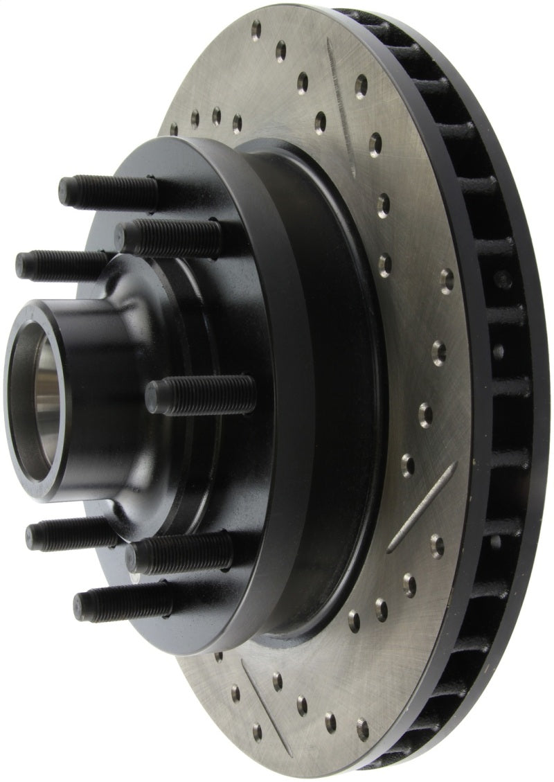 StopTech Drilled and Slotted Sport Rotors are 1-piece direct replacement brake discs for factory brake systems and stock calipers that look great behind your wheels – and offer significantly improved braking performance. The unique cross-drilling and slotting aids with heat and brake dust dispersal, prevents glazing of the pads, adds bite and improves wet and dry braking performance. Built to last, the black e-coating provides protection from corrosion and the high carbon metallurgy (in most applications) offers quieter operation, better crack resistance and increased performance.