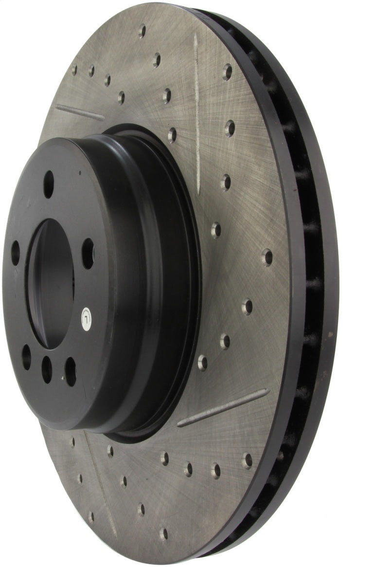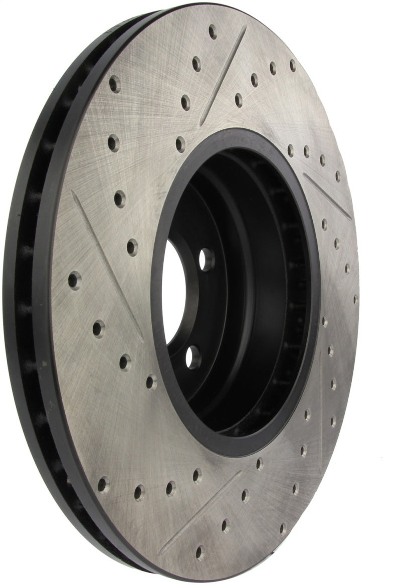 StopTech Drilled and Slotted Sport Rotors are 1-piece direct replacement brake discs for factory brake systems and stock calipers that look great behind your wheels – and offer significantly improved braking performance. The unique cross-drilling and slotting aids with heat and brake dust dispersal, prevents glazing of the pads, adds bite and improves wet and dry braking performance. Built to last, the black e-coating provides protection from corrosion and the high carbon metallurgy (in most applications) offers quieter operation, better crack resistance and increased performance.