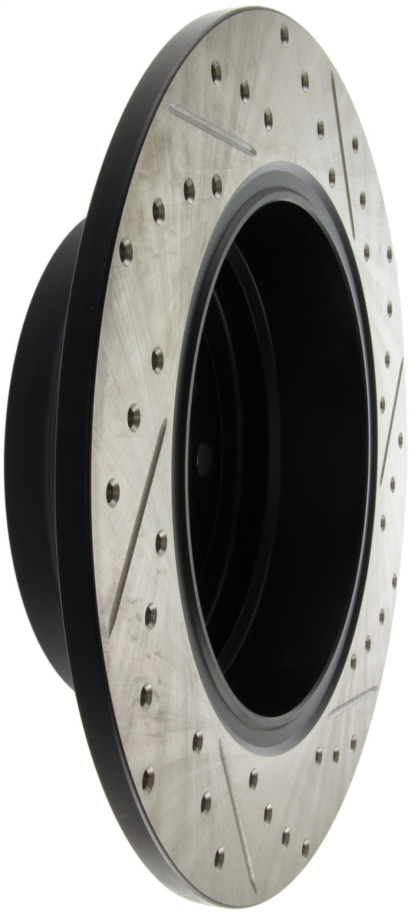StopTech Drilled and Slotted Sport Rotors are 1-piece direct replacement brake discs for factory brake systems and stock calipers that look great behind your wheels – and offer significantly improved braking performance. The unique cross-drilling and slotting aids with heat and brake dust dispersal, prevents glazing of the pads, adds bite and improves wet and dry braking performance. Built to last, the black e-coating provides protection from corrosion and the high carbon metallurgy (in most applications) offers quieter operation, better crack resistance and increased performance.