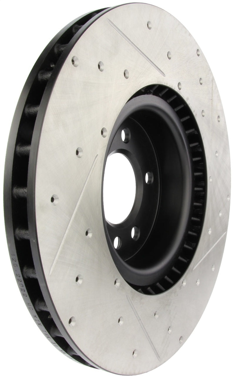 StopTech Drilled and Slotted Sport Rotors are 1-piece direct replacement brake discs for factory brake systems and stock calipers that look great behind your wheels – and offer significantly improved braking performance. The unique cross-drilling and slotting aids with heat and brake dust dispersal, prevents glazing of the pads, adds bite and improves wet and dry braking performance. Built to last, the black e-coating provides protection from corrosion and the high carbon metallurgy (in most applications) offers quieter operation, better crack resistance and increased performance.
