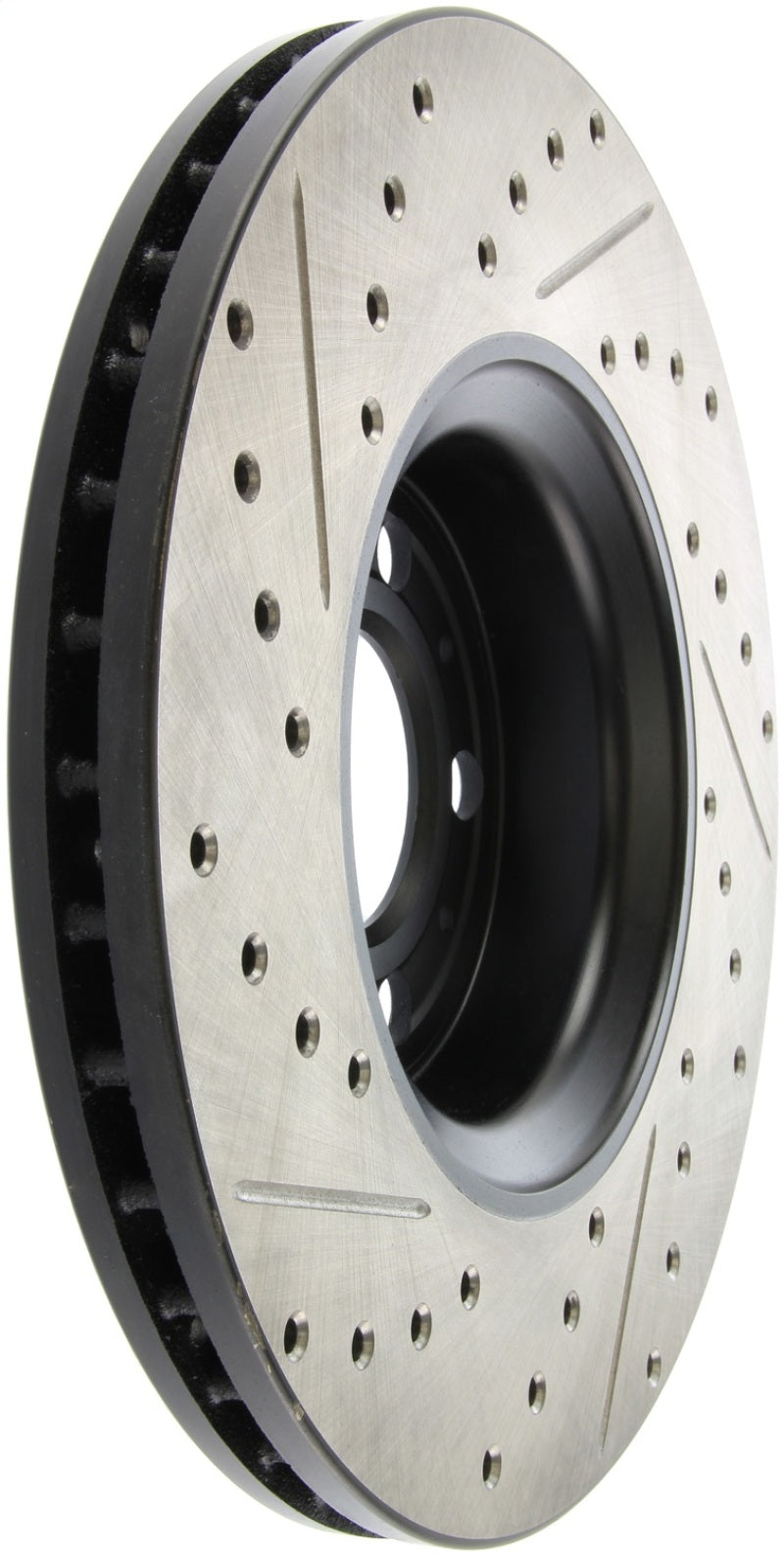 StopTech Drilled and Slotted Sport Rotors are 1-piece direct replacement brake discs for factory brake systems and stock calipers that look great behind your wheels – and offer significantly improved braking performance. The unique cross-drilling and slotting aids with heat and brake dust dispersal, prevents glazing of the pads, adds bite and improves wet and dry braking performance. Built to last, the black e-coating provides protection from corrosion and the high carbon metallurgy (in most applications) offers quieter operation, better crack resistance and increased performance.