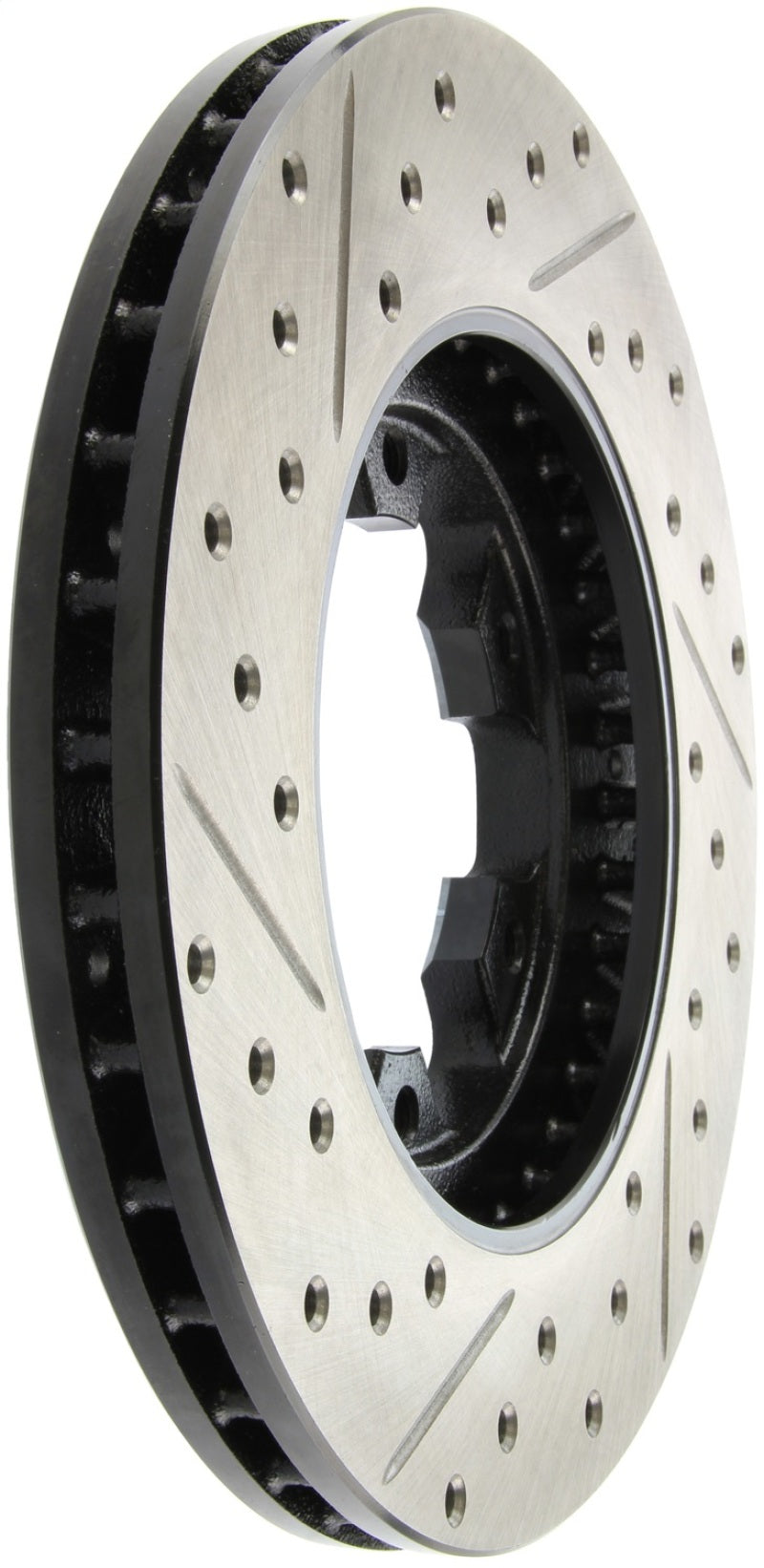 StopTech Drilled and Slotted Sport Rotors are 1-piece direct replacement brake discs for factory brake systems and stock calipers that look great behind your wheels – and offer significantly improved braking performance. The unique cross-drilling and slotting aids with heat and brake dust dispersal, prevents glazing of the pads, adds bite and improves wet and dry braking performance. Built to last, the black e-coating provides protection from corrosion and the high carbon metallurgy (in most applications) offers quieter operation, better crack resistance and increased performance.