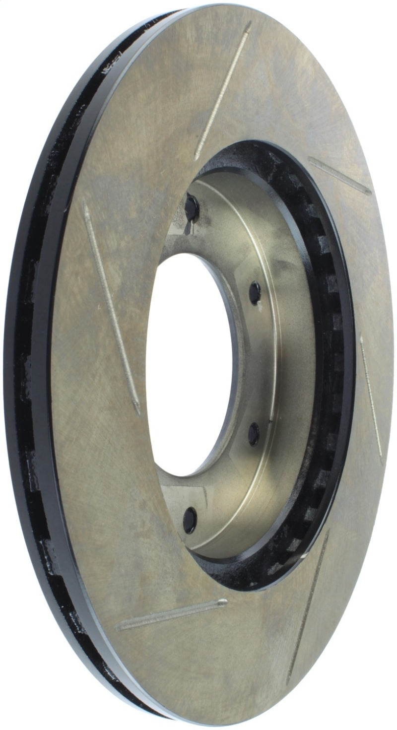 StopTech Slotted Sport Rotors are 1-piece direct replacement brake discs for factory brake systems and stock calipers that look great behind your wheels – and offer significantly improved braking performance. The unique slotting aids with heat and brake dust dispersal, prevents glazing of the pads, adds bite and improves wet and dry braking performance. Built to last, the black e-coating provides protection from corrosion and the high carbon metallurgy (in most applications) offers quieter operation, better crack resistance and increased performance.
