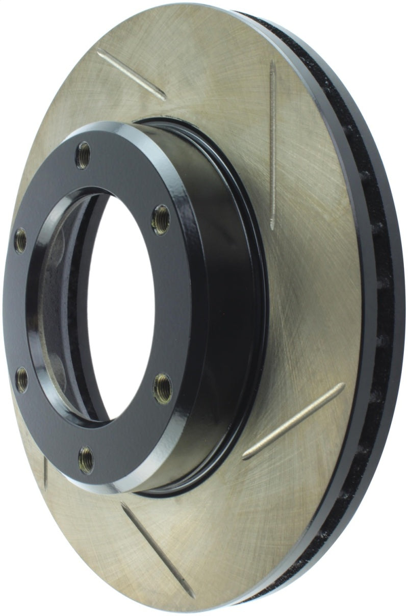StopTech Slotted Sport Rotors are 1-piece direct replacement brake discs for factory brake systems and stock calipers that look great behind your wheels – and offer significantly improved braking performance. The unique slotting aids with heat and brake dust dispersal, prevents glazing of the pads, adds bite and improves wet and dry braking performance. Built to last, the black e-coating provides protection from corrosion and the high carbon metallurgy (in most applications) offers quieter operation, better crack resistance and increased performance.