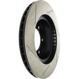 StopTech Slotted Sport Rotors are 1-piece direct replacement brake discs for factory brake systems and stock calipers that look great behind your wheels – and offer significantly improved braking performance. The unique slotting aids with heat and brake dust dispersal, prevents glazing of the pads, adds bite and improves wet and dry braking performance. Built to last, the black e-coating provides protection from corrosion and the high carbon metallurgy (in most applications) offers quieter operation, better crack resistance and increased performance.