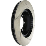 StopTech Slotted Sport Rotors are 1-piece direct replacement brake discs for factory brake systems and stock calipers that look great behind your wheels – and offer significantly improved braking performance. The unique slotting aids with heat and brake dust dispersal, prevents glazing of the pads, adds bite and improves wet and dry braking performance. Built to last, the black e-coating provides protection from corrosion and the high carbon metallurgy (in most applications) offers quieter operation, better crack resistance and increased performance.