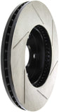 StopTech Slotted Sport Rotors are 1-piece direct replacement brake discs for factory brake systems and stock calipers that look great behind your wheels – and offer significantly improved braking performance. The unique slotting aids with heat and brake dust dispersal, prevents glazing of the pads, adds bite and improves wet and dry braking performance. Built to last, the black e-coating provides protection from corrosion and the high carbon metallurgy (in most applications) offers quieter operation, better crack resistance and increased performance.