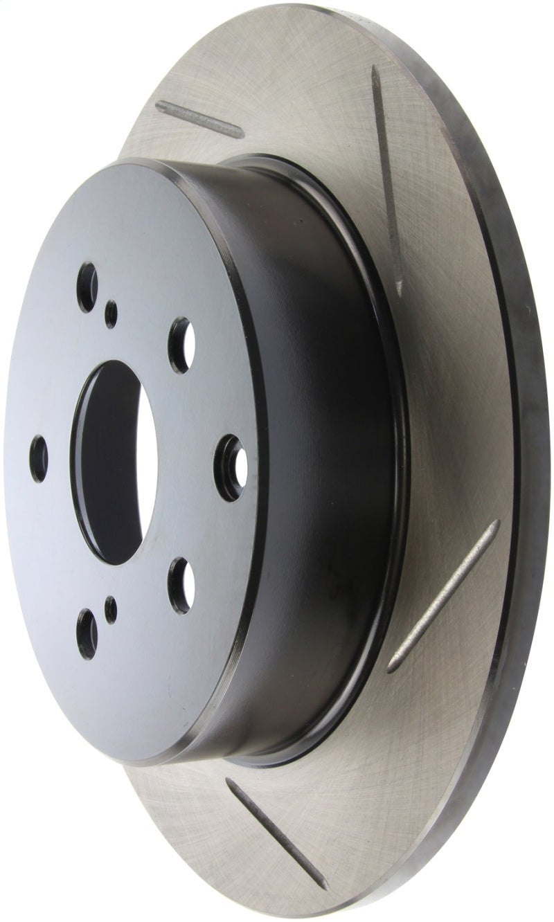 StopTech Slotted Sport Rotors are 1-piece direct replacement brake discs for factory brake systems and stock calipers that look great behind your wheels – and offer significantly improved braking performance. The unique slotting aids with heat and brake dust dispersal, prevents glazing of the pads, adds bite and improves wet and dry braking performance. Built to last, the black e-coating provides protection from corrosion and the high carbon metallurgy (in most applications) offers quieter operation, better crack resistance and increased performance.