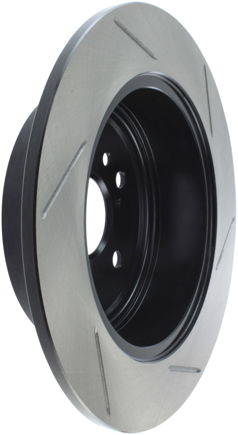 StopTech Slotted Sport Rotors are 1-piece direct replacement brake discs for factory brake systems and stock calipers that look great behind your wheels – and offer significantly improved braking performance. The unique slotting aids with heat and brake dust dispersal, prevents glazing of the pads, adds bite and improves wet and dry braking performance. Built to last, the black e-coating provides protection from corrosion and the high carbon metallurgy (in most applications) offers quieter operation, better crack resistance and increased performance.