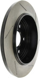 StopTech Slotted Sport Rotors are 1-piece direct replacement brake discs for factory brake systems and stock calipers that look great behind your wheels – and offer significantly improved braking performance. The unique slotting aids with heat and brake dust dispersal, prevents glazing of the pads, adds bite and improves wet and dry braking performance. Built to last, the black e-coating provides protection from corrosion and the high carbon metallurgy (in most applications) offers quieter operation, better crack resistance and increased performance.