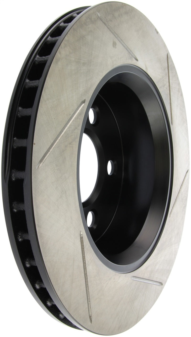 StopTech Slotted Sport Rotors are 1-piece direct replacement brake discs for factory brake systems and stock calipers that look great behind your wheels – and offer significantly improved braking performance. The unique slotting aids with heat and brake dust dispersal, prevents glazing of the pads, adds bite and improves wet and dry braking performance. Built to last, the black e-coating provides protection from corrosion and the high carbon metallurgy (in most applications) offers quieter operation, better crack resistance and increased performance.