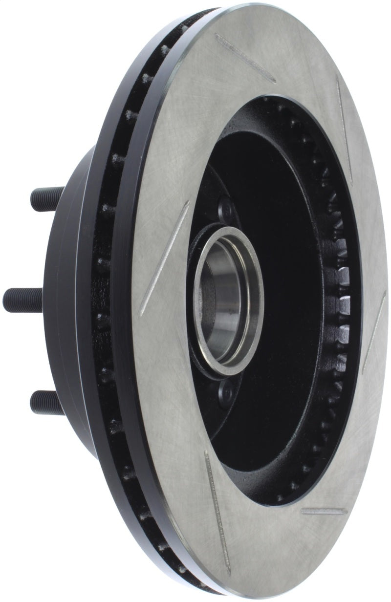StopTech Slotted Sport Rotors are 1-piece direct replacement brake discs for factory brake systems and stock calipers that look great behind your wheels – and offer significantly improved braking performance. The unique slotting aids with heat and brake dust dispersal, prevents glazing of the pads, adds bite and improves wet and dry braking performance. Built to last, the black e-coating provides protection from corrosion and the high carbon metallurgy (in most applications) offers quieter operation, better crack resistance and increased performance.