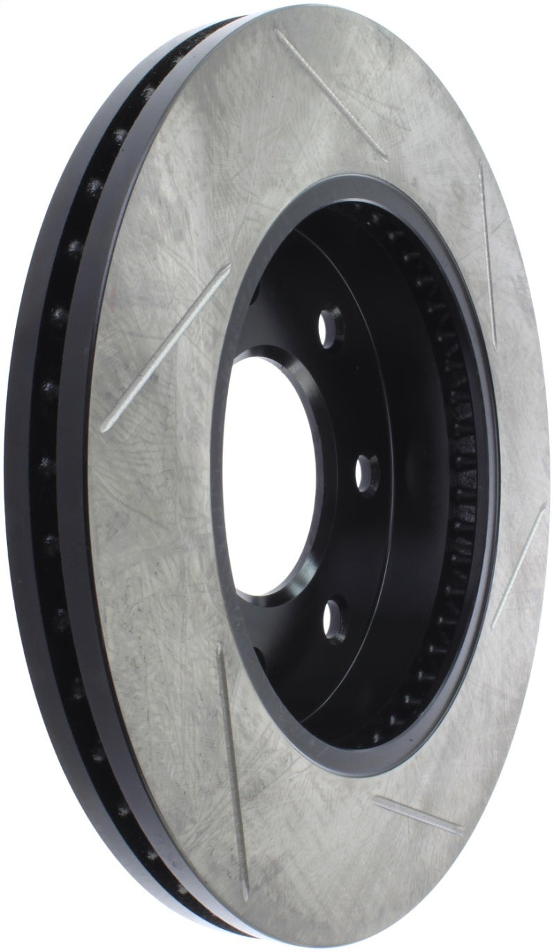 StopTech Slotted Sport Rotors are 1-piece direct replacement brake discs for factory brake systems and stock calipers that look great behind your wheels – and offer significantly improved braking performance. The unique slotting aids with heat and brake dust dispersal, prevents glazing of the pads, adds bite and improves wet and dry braking performance. Built to last, the black e-coating provides protection from corrosion and the high carbon metallurgy (in most applications) offers quieter operation, better crack resistance and increased performance.