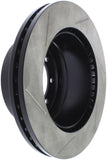 StopTech Slotted Sport Rotors are 1-piece direct replacement brake discs for factory brake systems and stock calipers that look great behind your wheels – and offer significantly improved braking performance. The unique slotting aids with heat and brake dust dispersal, prevents glazing of the pads, adds bite and improves wet and dry braking performance. Built to last, the black e-coating provides protection from corrosion and the high carbon metallurgy (in most applications) offers quieter operation, better crack resistance and increased performance.