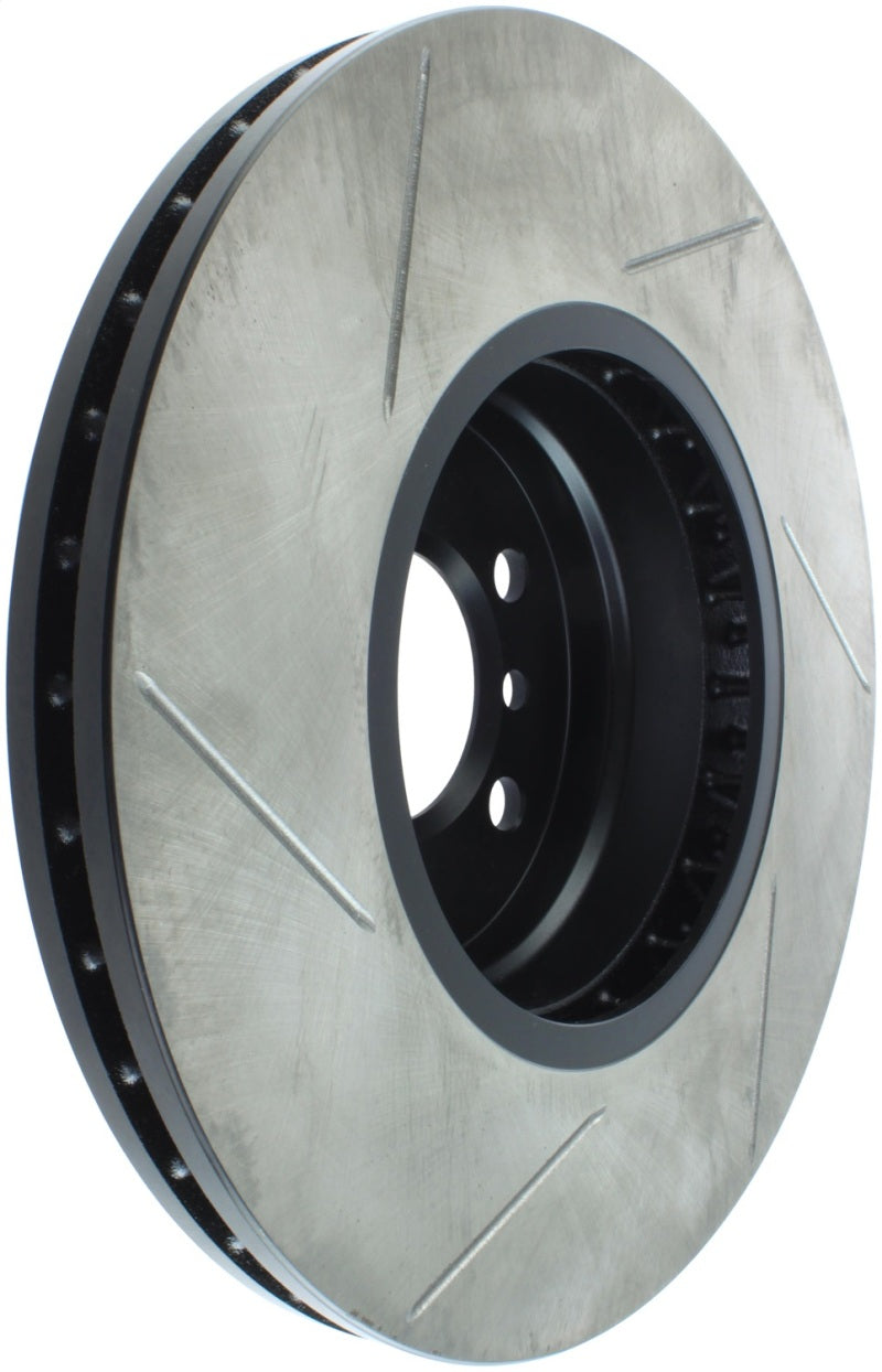 StopTech Slotted Sport Rotors are 1-piece direct replacement brake discs for factory brake systems and stock calipers that look great behind your wheels – and offer significantly improved braking performance. The unique slotting aids with heat and brake dust dispersal, prevents glazing of the pads, adds bite and improves wet and dry braking performance. Built to last, the black e-coating provides protection from corrosion and the high carbon metallurgy (in most applications) offers quieter operation, better crack resistance and increased performance.