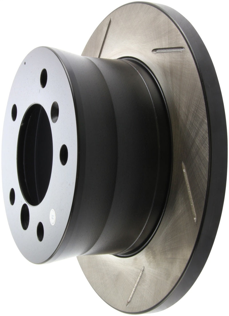 StopTech Slotted Sport Rotors are 1-piece direct replacement brake discs for factory brake systems and stock calipers that look great behind your wheels – and offer significantly improved braking performance. The unique slotting aids with heat and brake dust dispersal, prevents glazing of the pads, adds bite and improves wet and dry braking performance. Built to last, the black e-coating provides protection from corrosion and the high carbon metallurgy (in most applications) offers quieter operation, better crack resistance and increased performance.