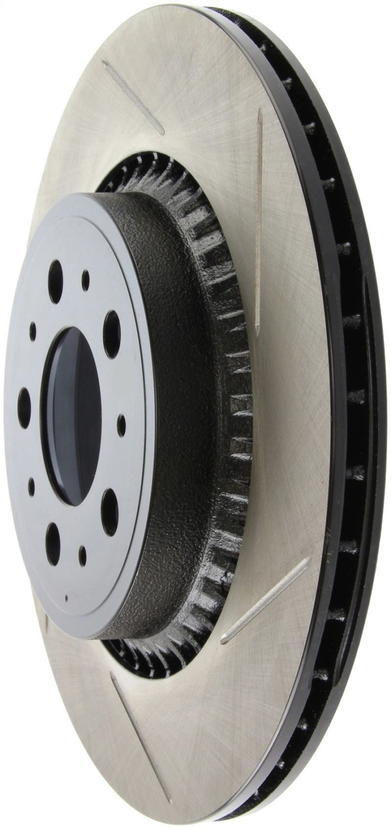 StopTech Slotted Sport Rotors are 1-piece direct replacement brake discs for factory brake systems and stock calipers that look great behind your wheels – and offer significantly improved braking performance. The unique slotting aids with heat and brake dust dispersal, prevents glazing of the pads, adds bite and improves wet and dry braking performance. Built to last, the black e-coating provides protection from corrosion and the high carbon metallurgy (in most applications) offers quieter operation, better crack resistance and increased performance.