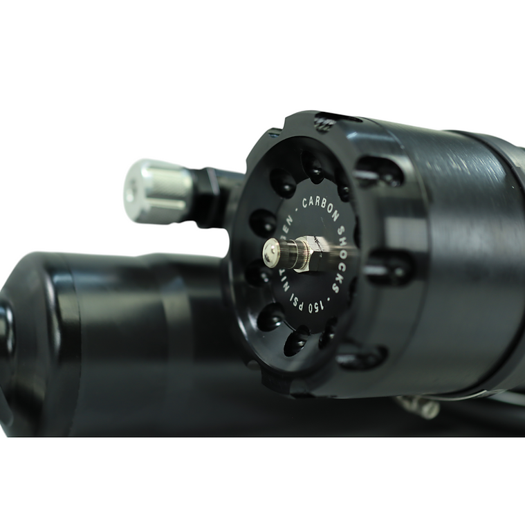 Take your Ram TRX to the next level with the Carbon Shocks Stage Package. Engineered, tested, and manufactured in Oklahoma City, this kit delivers uncompromising American-made performance both on the street and in the desert. Designed as a complete 4-shock upgrade, it replaces the factory electronic system with true race-level suspension control that you can dial in instantly.